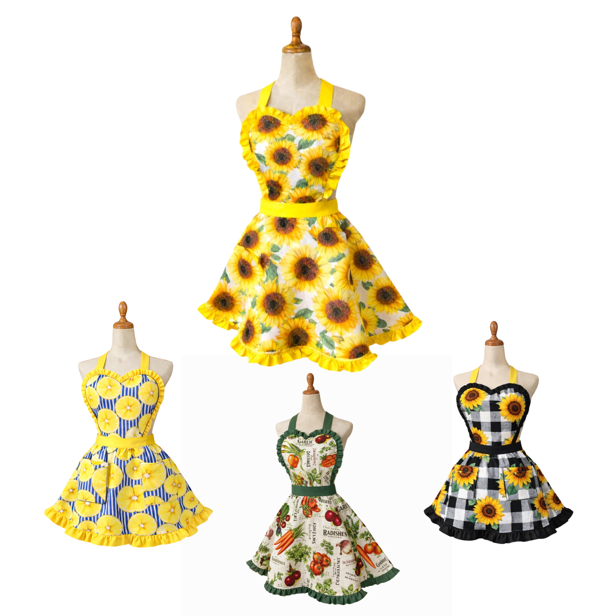 I absolutely love this apron! The sunflower print is bright and cheerful. The fabric feels nice and sturdy, and it fits comfortably without getting in the way while moving. Brings summer vibes!